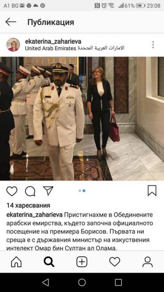 Фейсбук буквално прегря от задявки и коментари по адрес на външната министърка Екатерина Захариева, която публикува в мрежата снимка от посещението си в Обединените арабски емирства и това как делегацията ни имала първа среща с министъра на изкуствения интелект на арабската държава.
